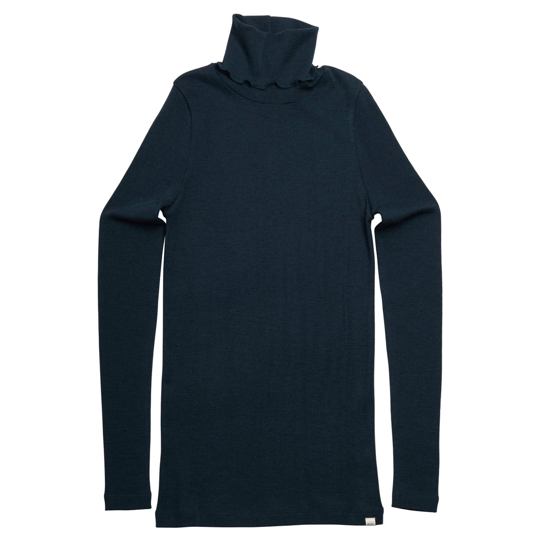 Minimalisma Womens Merino Turtleneck Top – Navy Teal