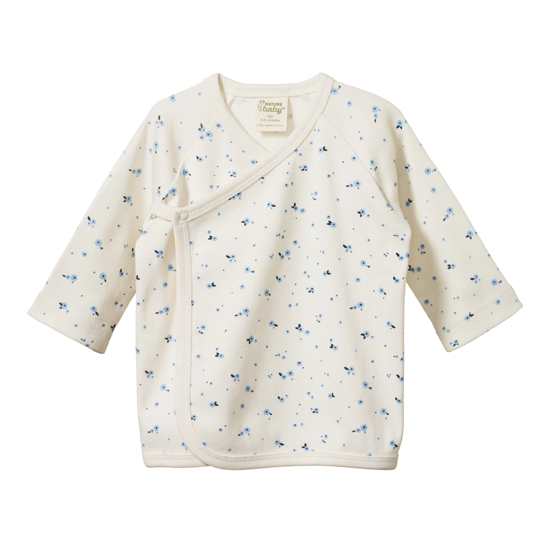 Designed especially for newborns. These jackets are a lovely extra layer for a baby in their first few months. A great option for newborns to avoid having to pull garments over baby’s head. Long raglan sleeves and a wrap-around style with a double layer at the front to keep baby’s chest warm. Easy to fasten with domes on the inside and outside. To minimise shrinkage, this fabric has been pre-washed at the Nature Baby GOTS certified factory. Â