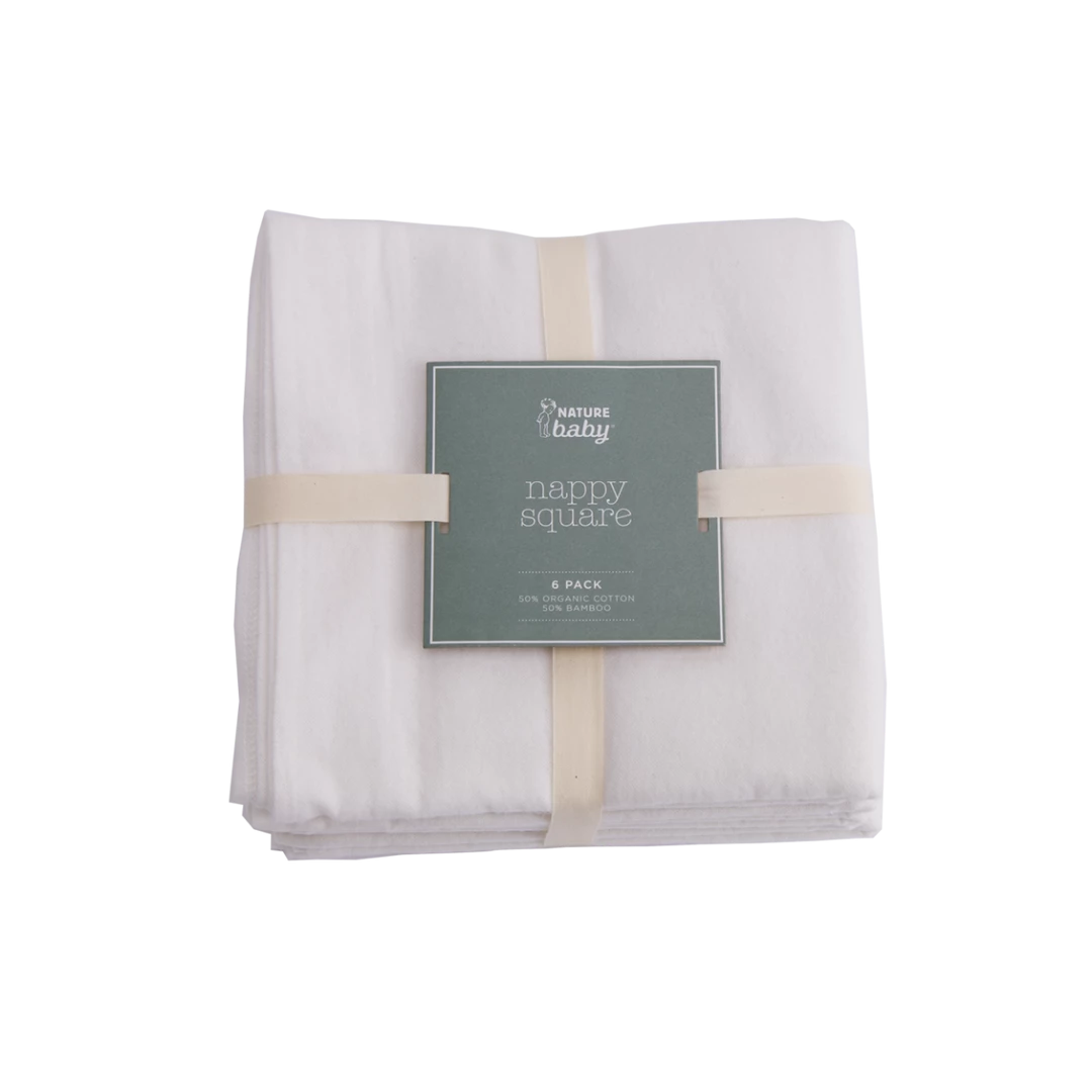 Nature Baby Organic Cotton & Bamboo Nappy Square – 6 Pack New