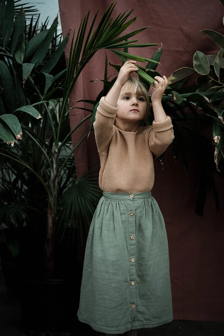 Size:Â Standard to slightly large. This will start as a 3/4 or full length skirt and get shorter as your child grows. No need to size up.